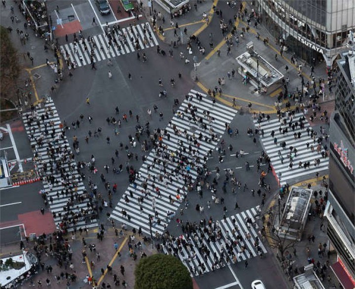 Die Shibuya-Kreuzung – eine der bekanntesten Ansichten Tokyos – ist in zahlreichen Filmen, Zeitschriften und Blogs zu sehen. Während der geschäftigsten Zeiten bahnen sich alle zwei Minuten geschätzte 1.000 bis 2.500 Menschen ihren Weg über diese Kreuzung – so viele, dass sie in kürzester Zeit ein Fußballstadion füllen könnten.